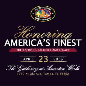 Honoring America’s Finest We invite you to celebrate Special Operations Warrior Foundation’s 46th ... 23 Apr 6:00 pm - 9:30 pm The Gathering at Armature Works1910 N. Ola Ave, Tampa, FL 33602