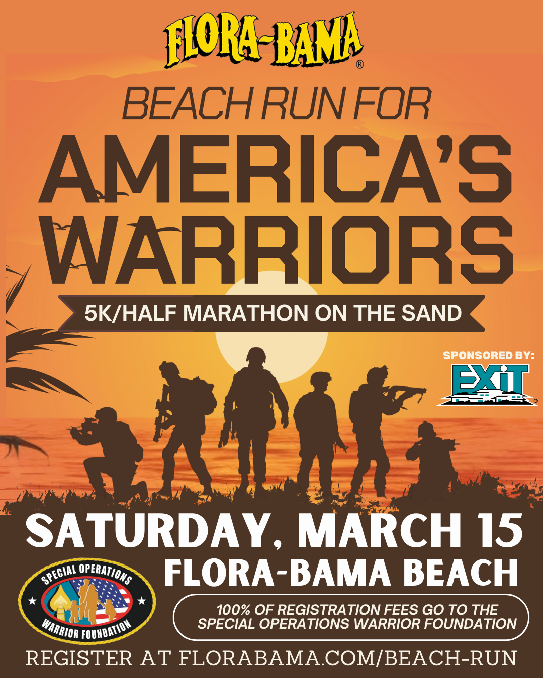 FloraBama Beach Run + Add to Google Calendar + iCal / Outlook export The event is finished. Date Mar 15 2025 Expired! Time All Day Location Flora-Bama 17401 Perdido Key Dr, Pensacola, FL 32507 Category Fundraiser Race Share this event
