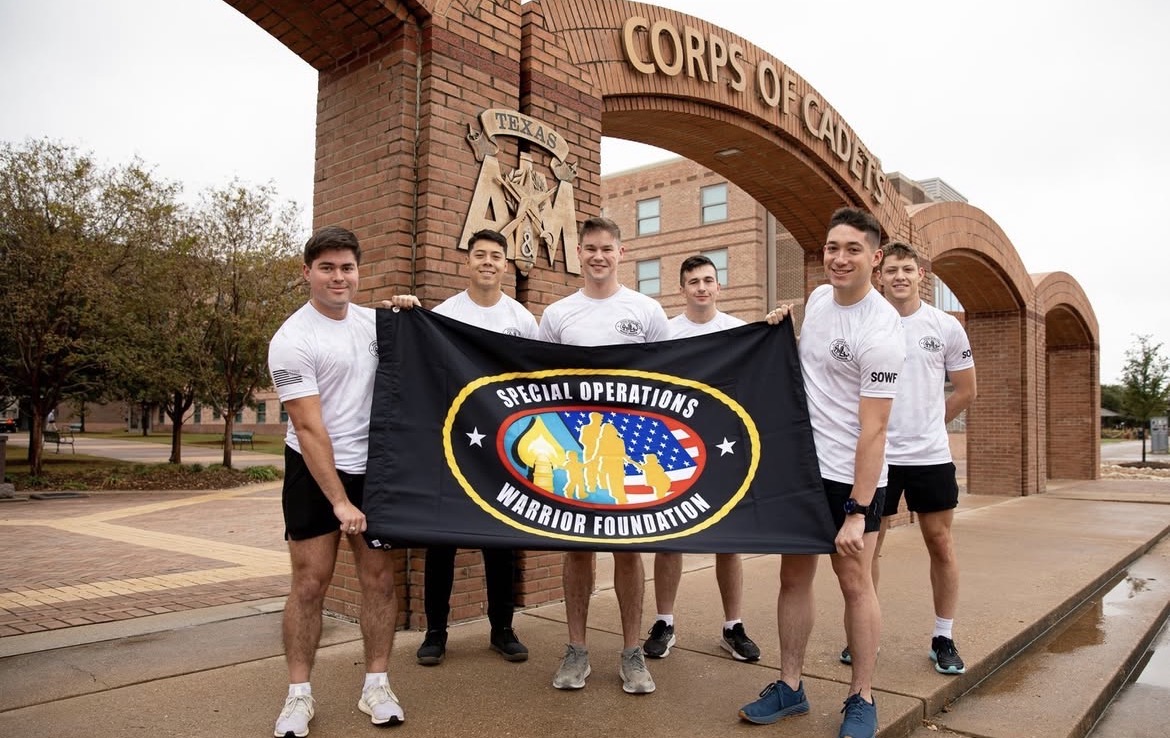 A six-man team from Company P-2 in the Texas A&M Corps of Cadets. Annually, they embark on a challenging cumulative 1,000-mile ruck march, which is a long-distance, weight-loaded march, to raise funds for the Special Operations Warrior Foundation.